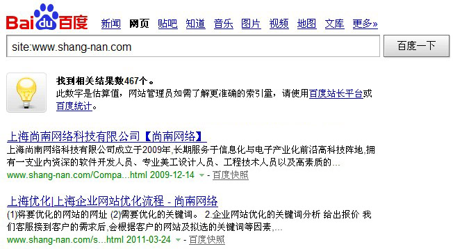 第一、首先通過site:指令來查詢網站收錄變化,比如說你的網址是029jiex.com,就在百度里搜索“site:029jiex.com”來查詢你的網站收錄情況,site指令查詢結果主要有以下幾種情況: