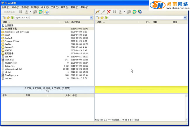 第四步:文件的上傳與下載:點擊connect鍵后,就正式連接上了。 如上載文件只需在左側選中若干文件再用鼠標拖到右側即可,下載反向操作即可。