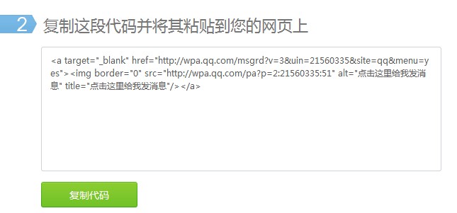 第四步:復制代碼,粘貼到需要QQ客服的頁面,如下圖。